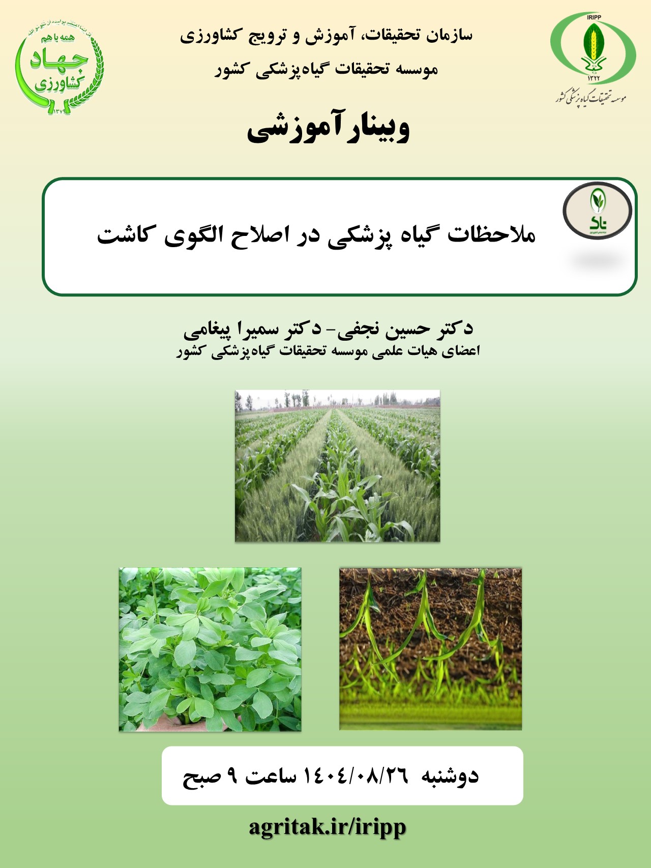 عنوان وبینار آموزشی: تـاثیر تغییرات اقلیم بر بیماری های گیاهی و روش های مـدیریت آن