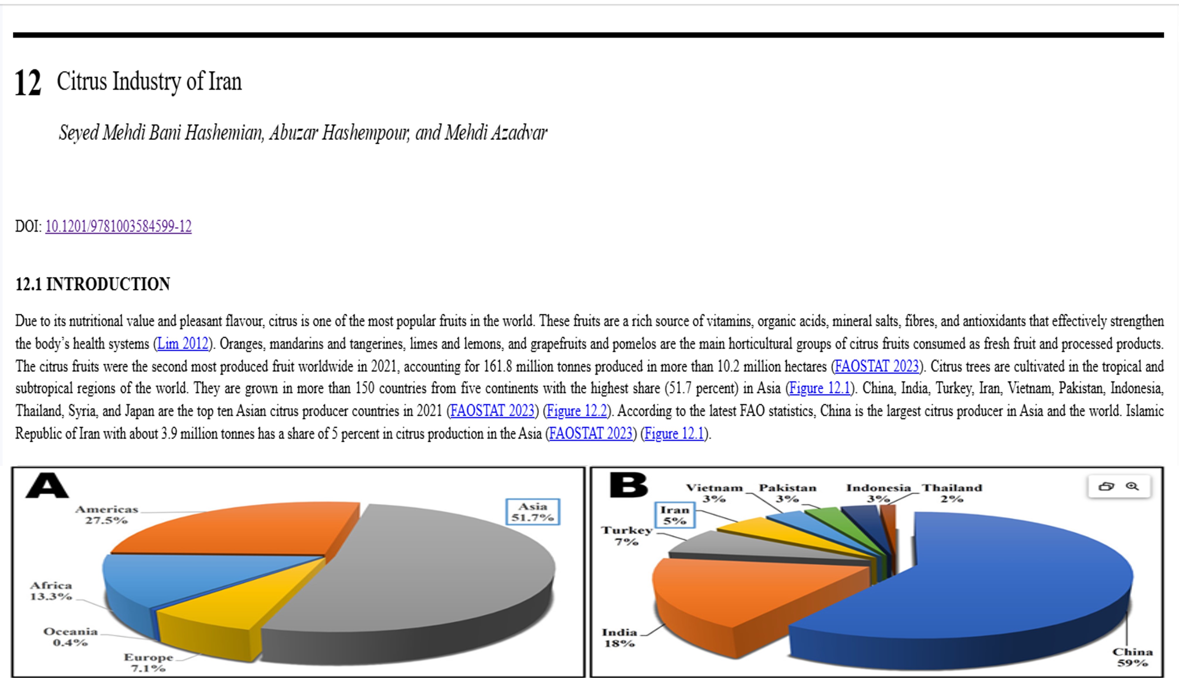 چاپ فصلی از کتاب Asian Citrus Industry, Growth and Sustainability در خصوص صنعت مرکبات ایران توسط سه نفر از محققان سازمان تات فصل دوازدهم کتاب Asian Citrus Industry, Growth and Sustainability با عنوان Citrus Industry of Iran توسط آقایان سید مهدی بنی هاشمیان، ابوذر هاشیم پور (اعضای هیات علمی پژوهشکده مرکبات، موسسه تحقیقات علوم باغبانی) و مهدی آزادهوار (رییس بخش تحقیقات گیاهپزشکی کرمان) با زیرعناوینی ازجمله معرفی نواحی کشت مرکبات در ایران، ارقام و پایه های تجاری، وضعیت فرآوری، صنایع مرتبط، بازاررسانی و صادرات مرکبات در ایران، معرفی و بیان سابقه و توانمندیهای موسسات و مراکز تحقیقاتی و آموزشی مرتبط، و معرفی چالشهای زیستی و غیرزیستی مهم و راهبردهای مدیریت آنها تالیف و منتشر شد. گردآوری و تدوین این کتاب توسط 5 نفر از محققین سرشناس مرکبات از کشورهای هند، کره جنوبی و ایالات متحده انجام و توسط انتشارات Taylor & Francis Group, CRC Press در 14 فصل چاپ شده و در فروردین ماه 2026 میلادی منتشر خواهد شد.